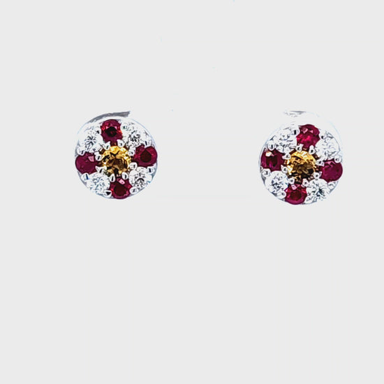 14K White Gold custom made earrings featuring genuine Citrine, Rubies and Diamonds
